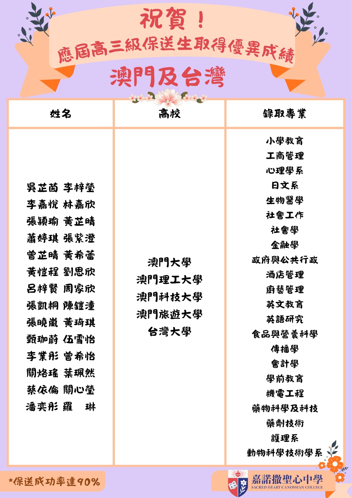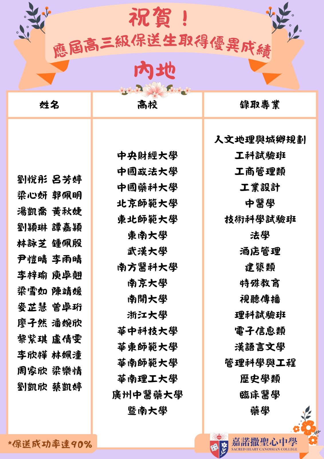 祝賀! 應屆高三級保送生取得優異成績