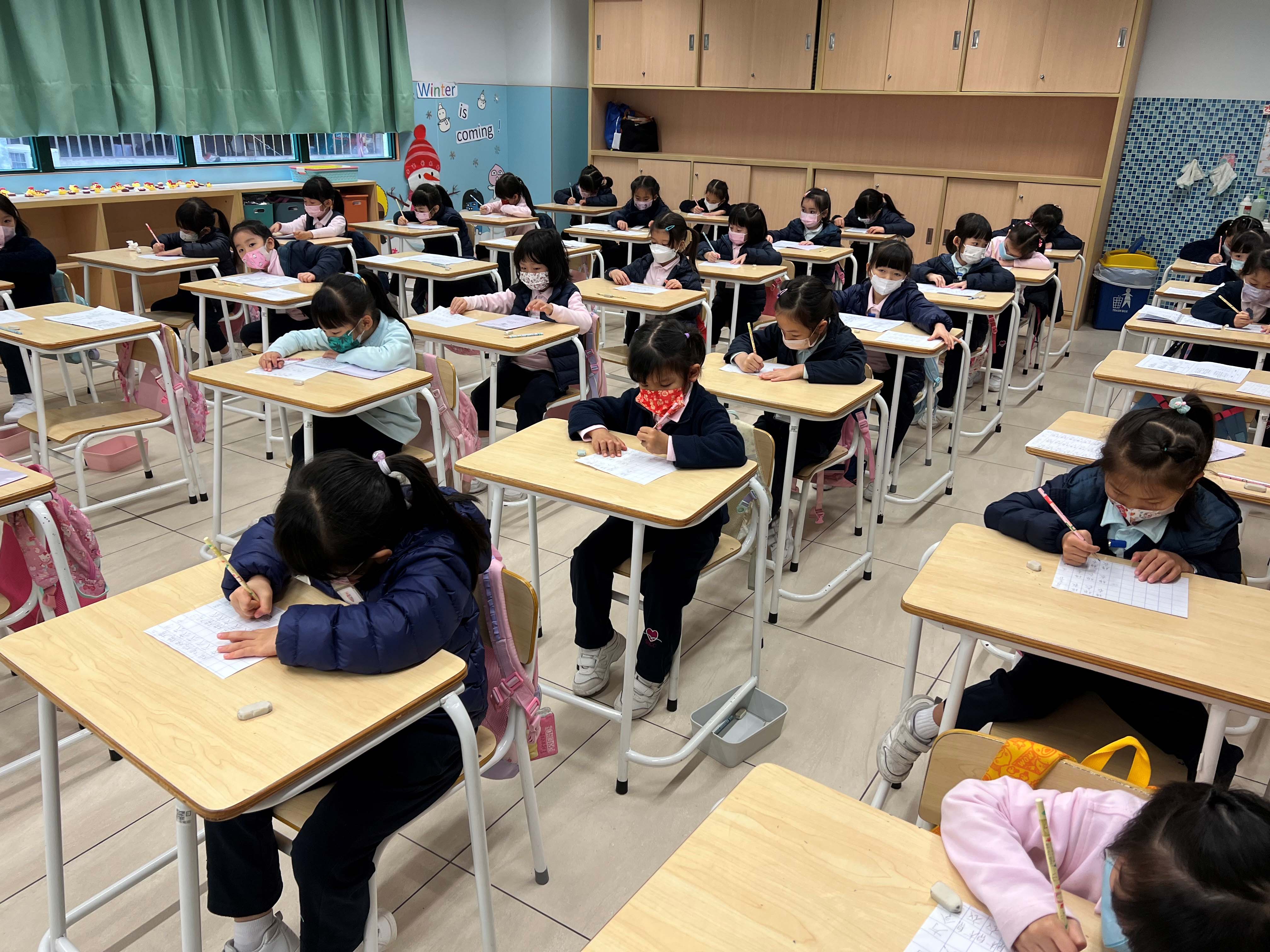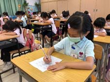 2022年6月17日 幼低及幼高學生在當天早讀堂進行了英文硬筆書法比賽。學生們都專心致志,認真寫字的模樣令人歡喜。