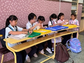 中小學部於陰操場增設電視播放校園活動花絮,同時更換操場座椅,為校園環境增添色彩。